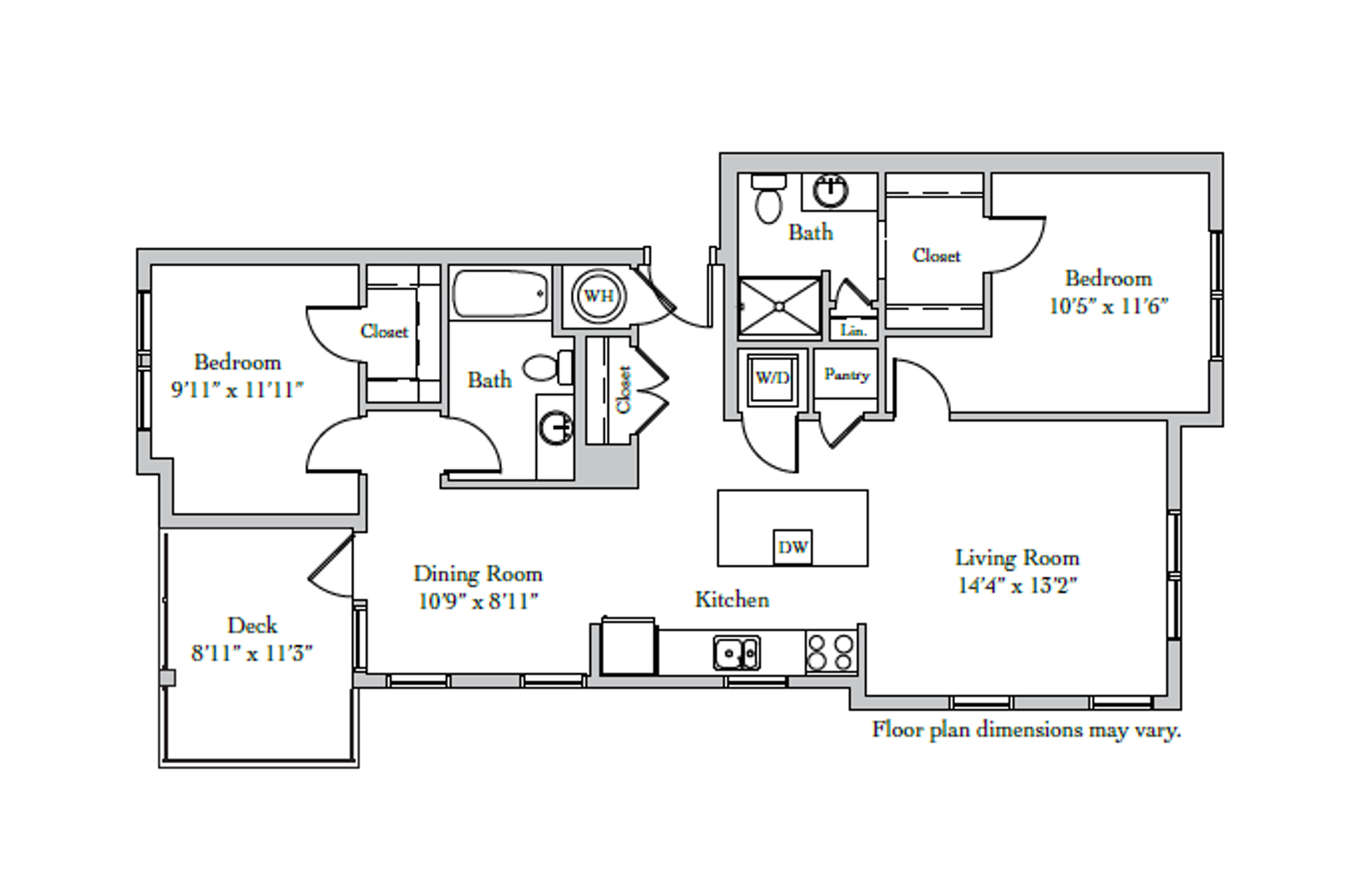 2nd floor (walk up) corner 2-bedroom/2-bathroom apartment home with five extra windows, stainless steel appliances, in unit washer/dryer, and extended deck space.